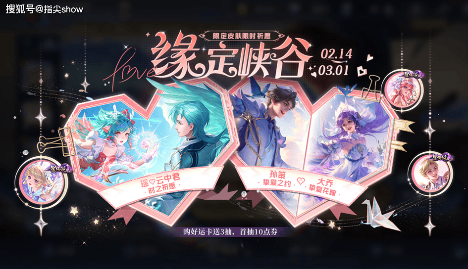2月14日情人节限定皮肤,好运卡首周最低890点券,包含个性按键,需要在活动界面主动辊领取。