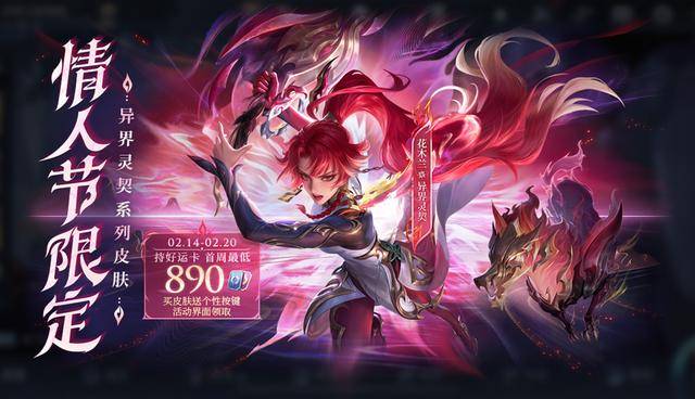 花木兰传说新皮肤将在2月14日上架,开好运卡折扣890点券,好运卡需要180点券。
