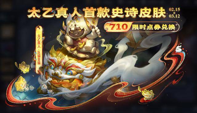 太乙真人史诗新皮肤将在2月15日上架,710限时点券可以免费兑换。