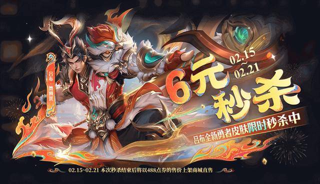 吕布勇者新皮肤将在2月15日上架,首周折扣60点券。