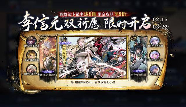 新春好运卡活动将在2月12日开启,180点券可得:4抽无双祈愿、10抽珍宝祈愿、2抽天幕祈愿、3抽返场祈愿,等等。