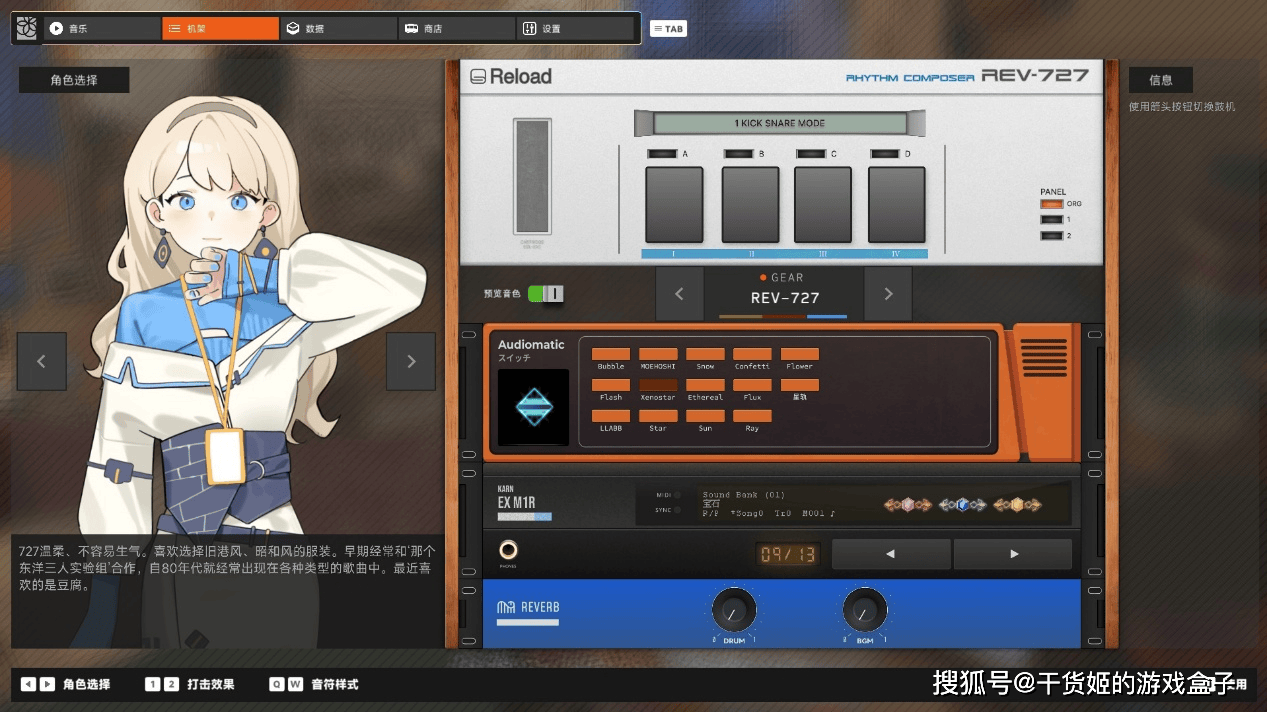 每位角色都对应各种的一套鼓机音色与人物立绘。并且,整体美术设计还是很可爱的,也会对玩家的点击互动产生一些轻微反应,以及音游环节的一些Q版小表情。虽说角色数量不算多,但未来应该也会不断更新。带来更多音色类型。