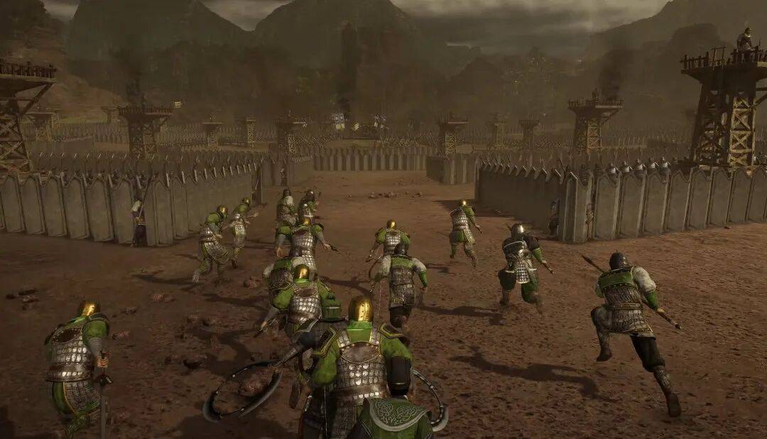 除了剧情和人设方面的雷同, 《起源》还在一些细节上,高度还原了大家熟悉的新《三国》。比方说游戏里随处可见的排成一列的盾兵,这八门金锁阵的布阵方式,和新《三国》简直如出一辙。