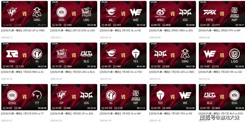 从数据层面看,今年第一赛段的播放量确实偏低,目前所有比赛的观看次数都没有超过50万次,仅有WBG对决IG以及WBG对决BLG这两场比赛的观看量超过40万次,而LNG对决OMG这一场甚至没超过5万,而在2025年LPL第一赛段中,有热门战队参加的比赛观看量基本都在50万以上,IG战队的比赛甚至可以达到200万到250万次,两者相差超过五倍。