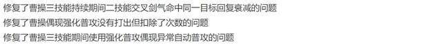 而此次的版本更新,则会重点优化强普的手感,同时,还会让普攻降低二技能的CD,从5%~10%改为固定10%,让曹操的强势期能来得更早一些。