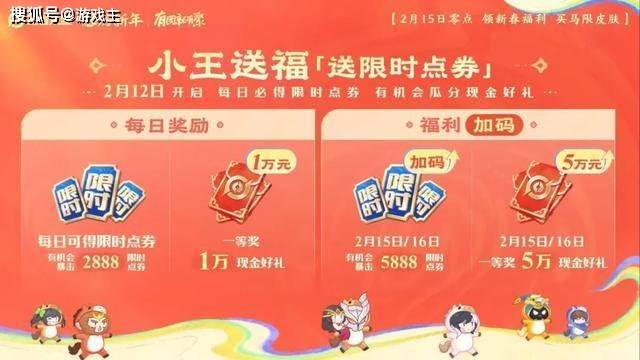 2月12日,一年一度的小王送福也会开启,这是保底能拿限时点券的活动。