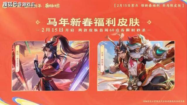 2月15日,还会上架2款60点券的新皮肤,分别是敖隐的“赤刃凌霄”和吕布的“舞狮寰”,品质都是勇者。