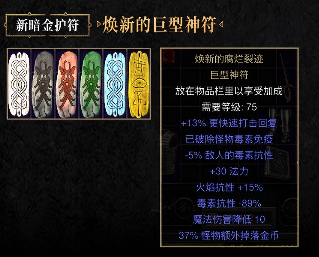 新的暗金大板:焕新的巨型神符,包含多条词缀。