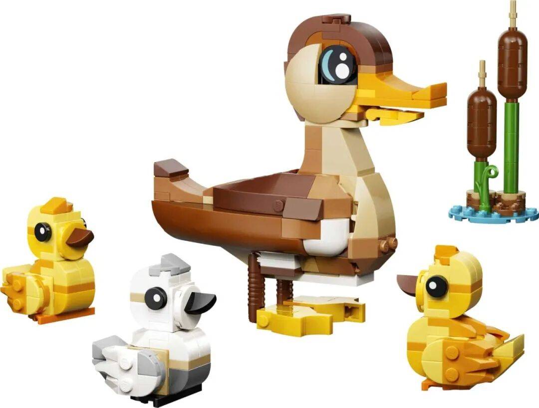 这是一款明显面向低龄玩家和亲子用户的动物主题赠品,全套共 262 个零件,可以拼出一只成年鸭和三只小鸭。