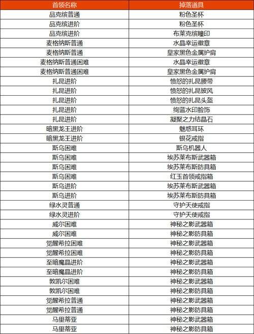 首领掉落道具的爆率提升,具体如下: