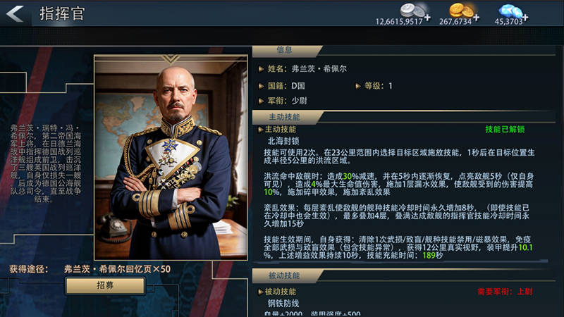 海战大师“弗兰茨·希佩尔”正式加入战局!其专属技能可在战场中召唤汹涌洪流,在对敌舰造成持续伤害的同时,通过减速实现精准控制,大幅压制敌舰机动能力。