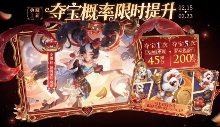 要知道,暴击夺宝这个东西,给的可是随机的,并不是说你想要什么就给什么的,万一给个小兵皮肤,不是闹麻了,更何况,20抽也翻不起什么浪花,留着和积分夺宝一起,到时候直接自己选,多舒服,要记住哦。