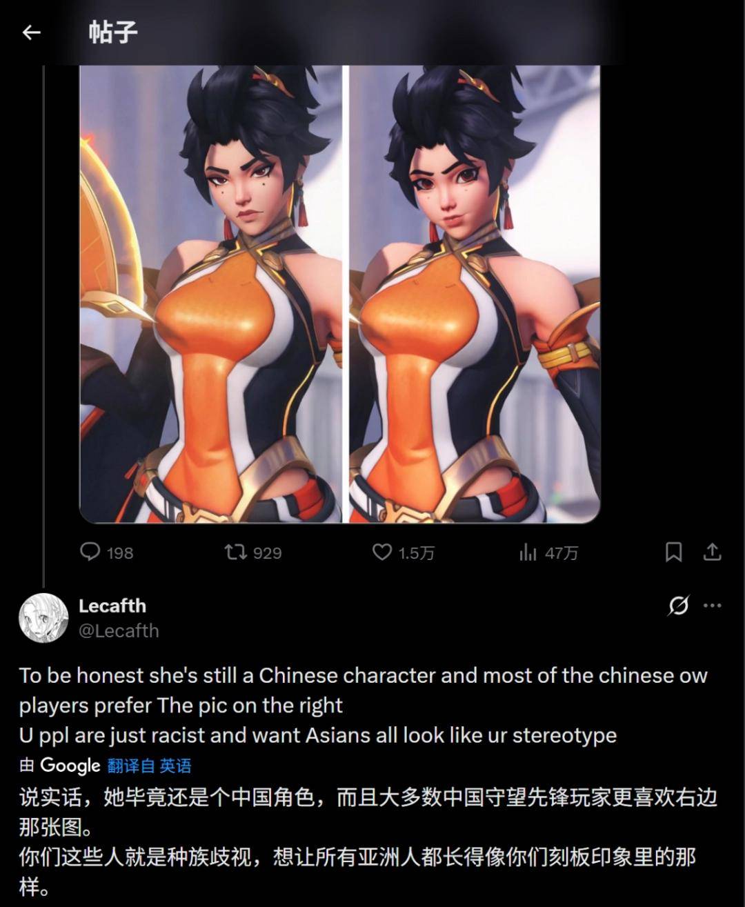 毕竟,对《守望先锋》的开发团队来说,他们能接触到的最多的反馈,很可能是外网以“DEI”为主的声音,而不是国内玩家的“微调”方案。
