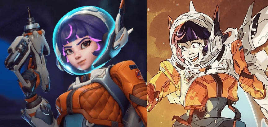 首先,是“安燃”这个角色“只顾了俊美,而不像了动漫”的问题。其实,这一点不怎么需要我特地去反驳。但凡是玩过一段时间《守望先锋》的玩家都知道,因为参与创作的艺术家不同、官方调整创作路线,以及2D转3D等各种原因,动画、漫画等官方宣传物料里的角色形象,本来就会与实装进游戏后有所差异。