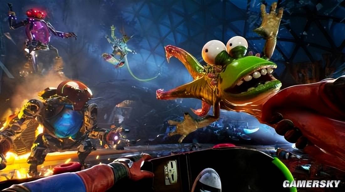 由于游戏设定在外太空背景,所有我们并不能完全用地球武器的思维,代入这些千奇百怪的“外星枪械”。而除了性格差异外,他们在具体形态与功能性上同样也有着明显区分。比如,不同枪械会有各自独特的设定与动画演出:你可以根据手枪Sweezy的“发型”,判断出剩余的子弹的大致数量;而当你用散弹枪Gus瞄准时,它也会主动扒拉开自己的眼睛,以供玩家更好操作。