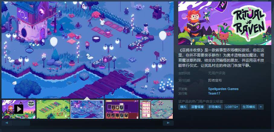 今日(8月16日),叙事型农场模拟游戏《巫鸦丰收祭》的Steam页面上线,该游戏支持简繁体中文,并将于未来发售。对于对该游戏感兴趣的玩家来说,可以提前进行关注。