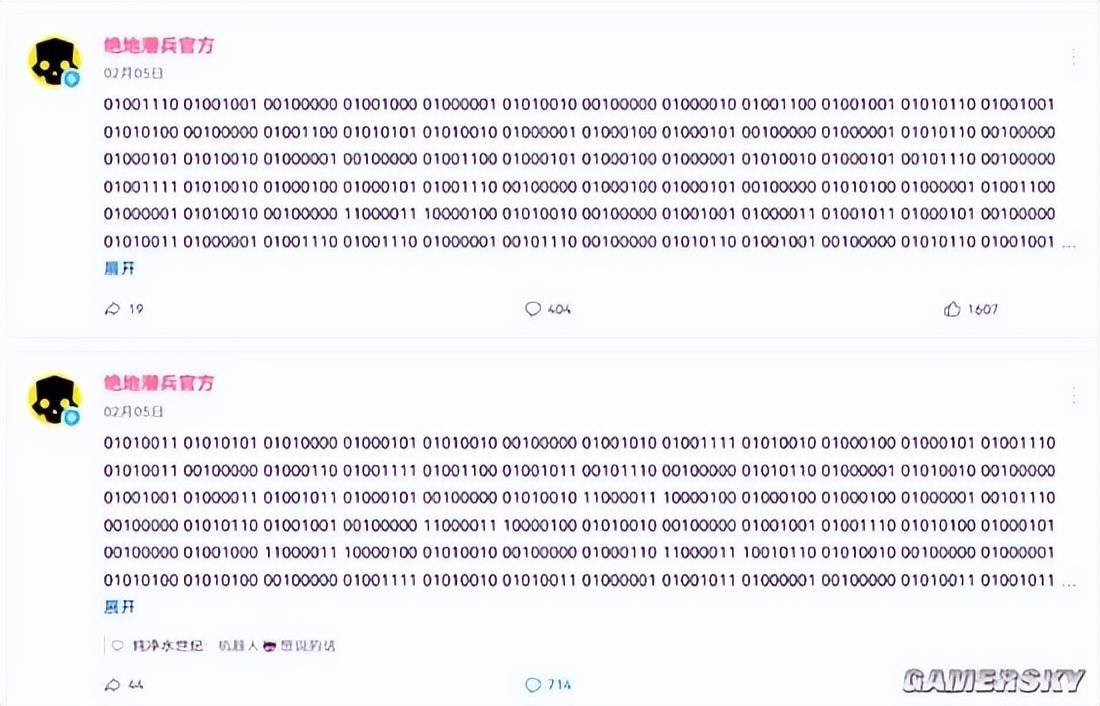 起初,是官方账号莫名其妙发送一连串二进制代码,让许多玩家纷纷怀疑官方又在搞什么抽象活。可在破译之后,里面的内容却无不令潜兵们冷汗直流: