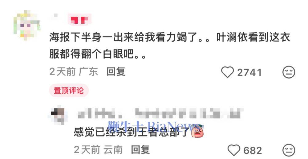 有网友吐槽,“海报下半身一出来给我看力竭了。叶澜依看到这衣服都得翻个白眼吧。”