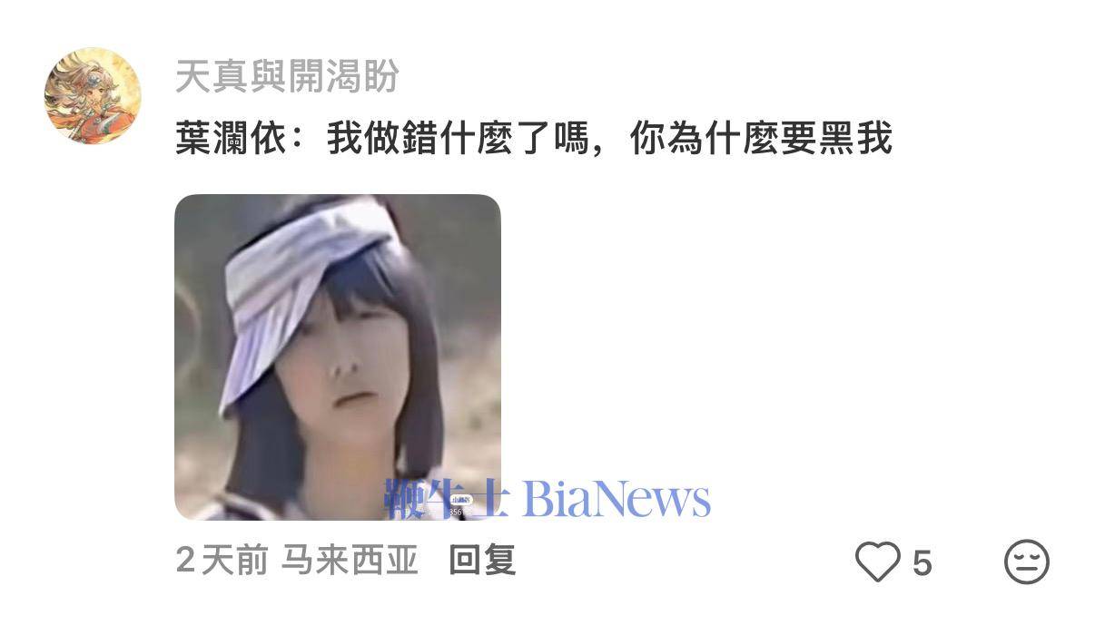 更有网友直接替叶澜依本人表达着无奈,“叶澜依:我做错了什么,你为什么要黑我。”