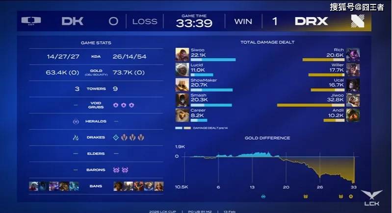 最终DK五局战胜DRX,同为世界冠军,但是亦有差距哦。最后,囧王者想说的是,看今天打表现,那就看Gen怎么选了。对于dk来说一个是好几年没赢过的,一个是刚三比零把他们拿下的。
