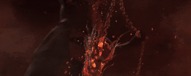 制作组敏锐捕捉到了这极具张力的“漫天火瀑”,故将其效果做了细腻重构,与甲胄及兵刃融为一体,最终呈现出了以星火之力点燃长夜的“长夜终尽”。