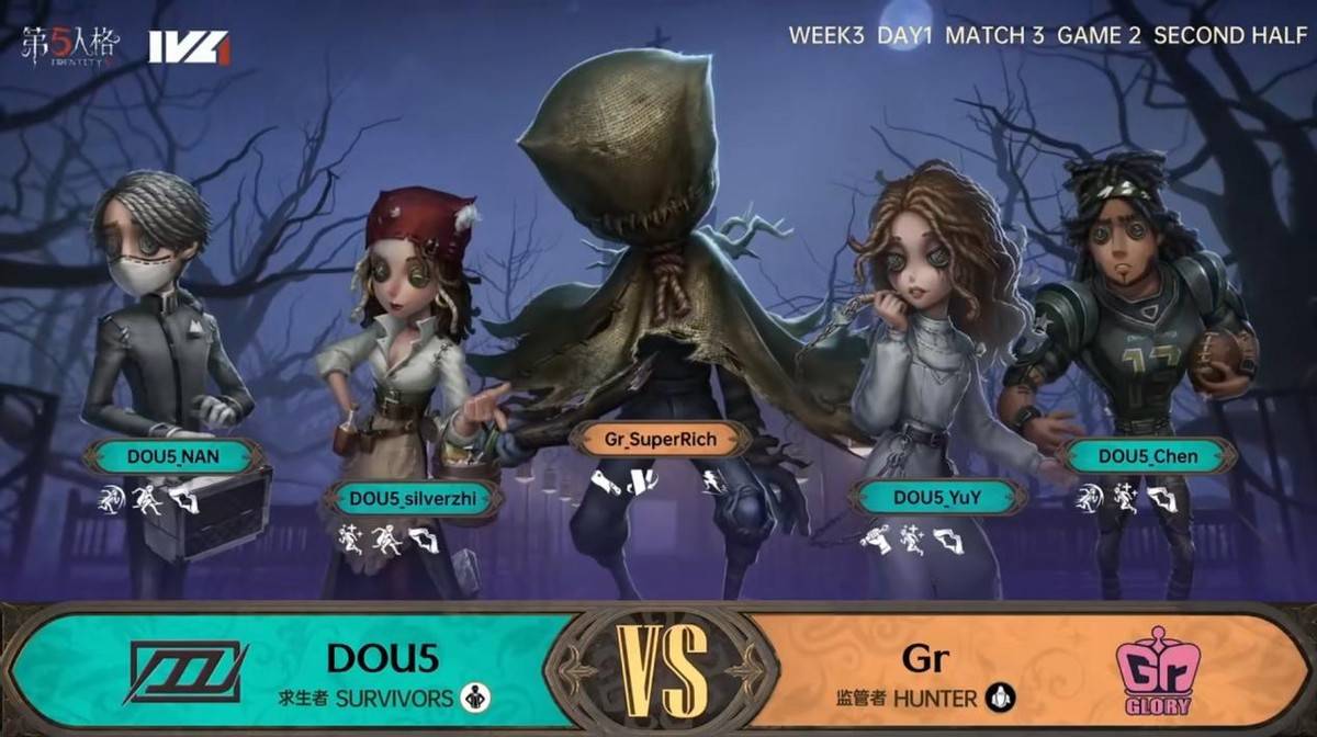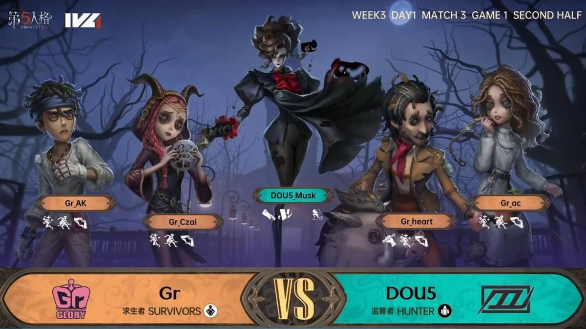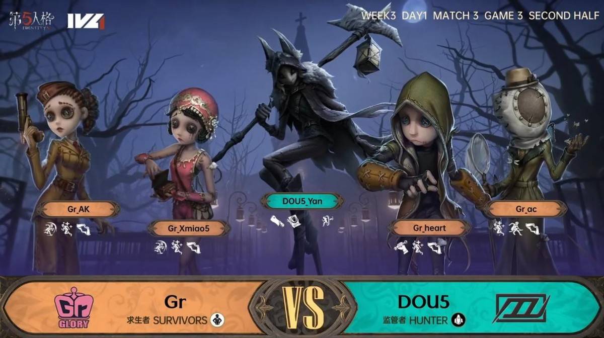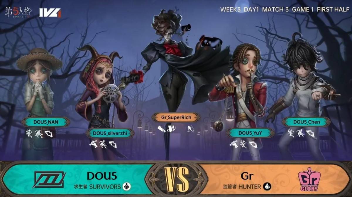 今天将进行的是第五人格2023IVL秋季赛常规赛的第3周第1天第3场比赛,对阵双方为Gr战队和DOU5战队。