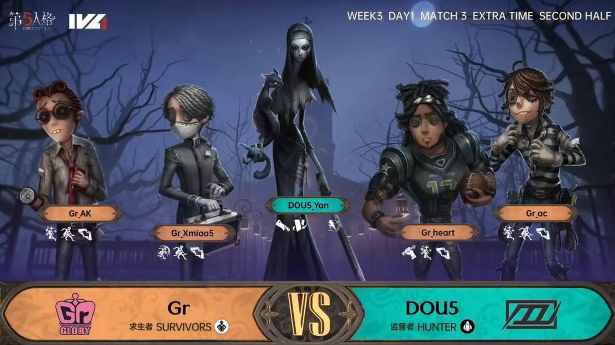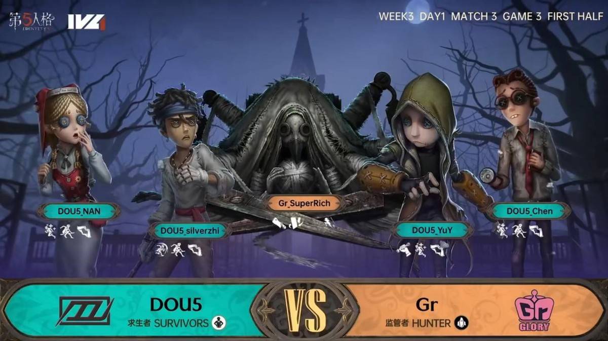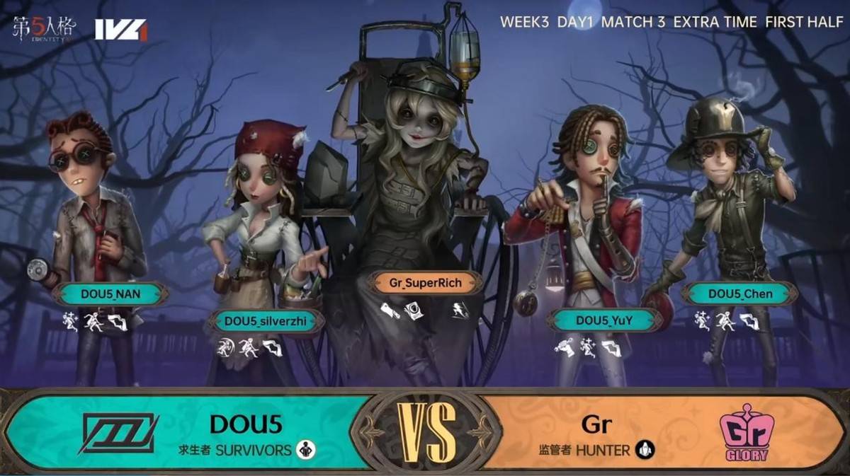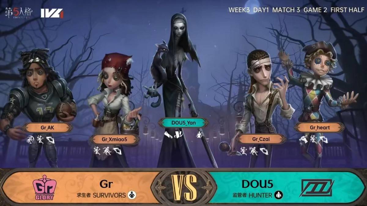 今天将进行的是第五人格2023IVL秋季赛常规赛的第3周第1天第3场比赛,对阵双方为Gr战队和DOU5战队。