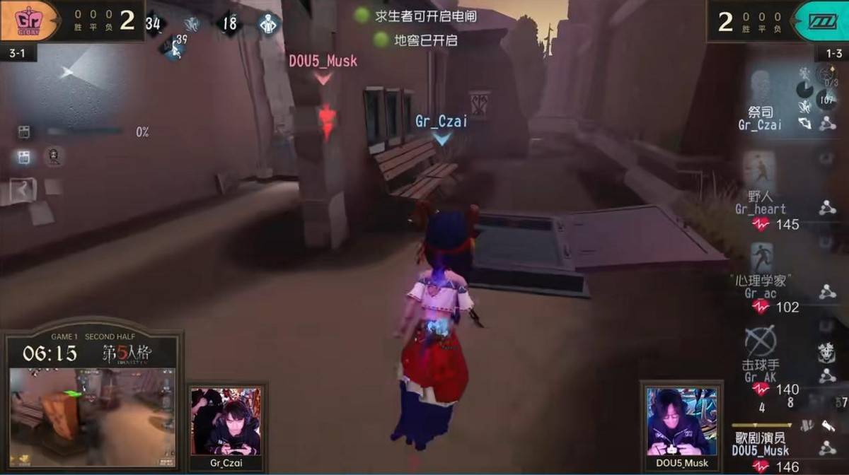 求生者Gr战队——Ban:歌剧演员 梦之女巫Pick:Gr_AK空军 Gr_Xmiao5舞女 Gr_heart佣兵 Gr_ac昆虫学者