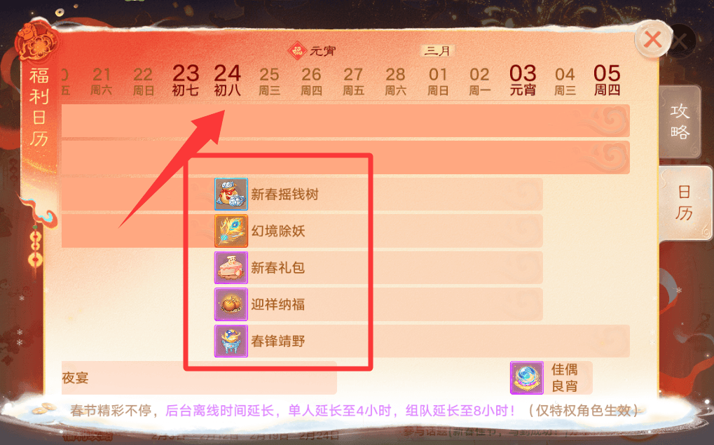 最后这个春锋靖野就更简单了,跟走马行商一样是挂机活动,22:00到次日8:00,除时间服以外,其他区服都自动开启深夜保持+自动巡逻,大家组队挂机巡逻就可以获得大量经验。
