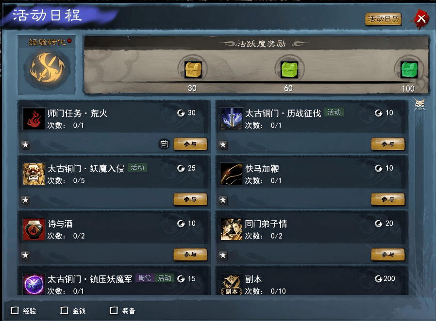 这里举个最简单的例子,《天下贰·经典版》的收益主要来源于日常任务,但你只要有系统送的装备,基本就能应付上面列表中的绝大多数日常任务。