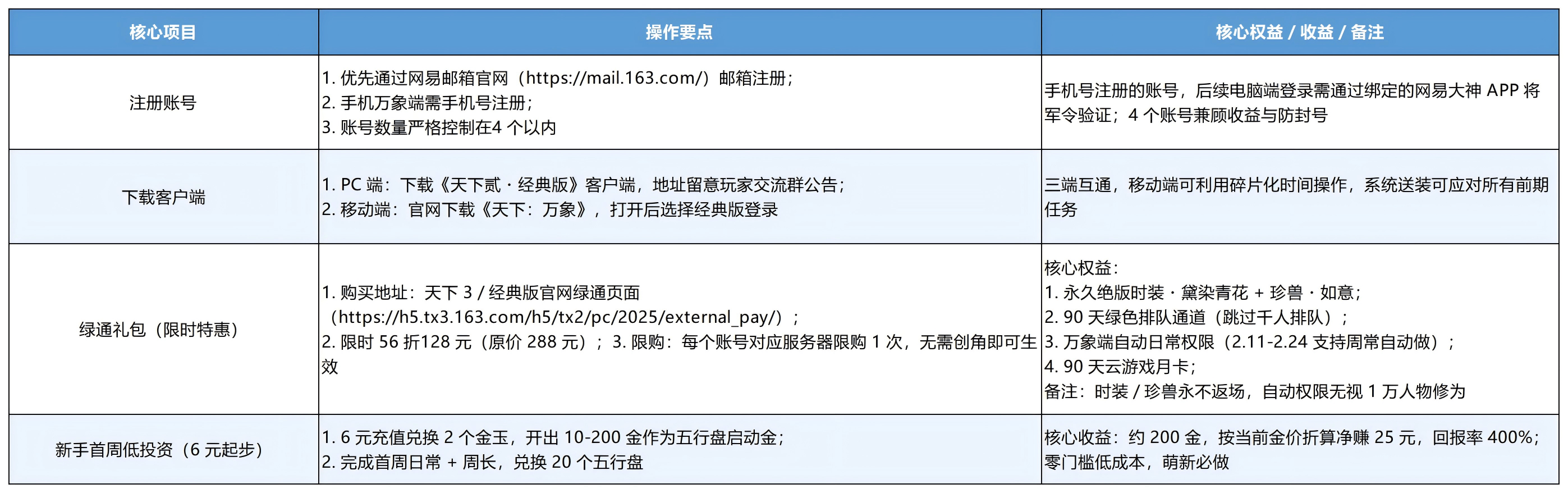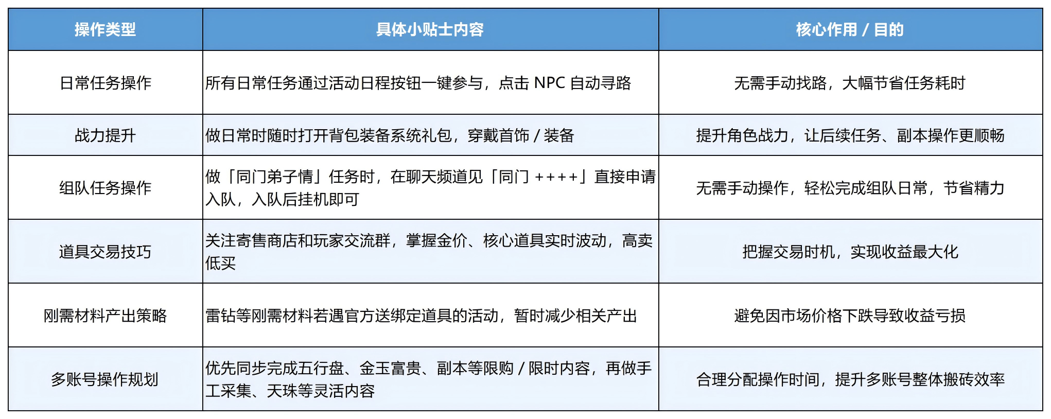 对于萌新来说,《天下贰·经典版》的任务还是有点复杂的。不过,只要你根据上表中操作步骤慢慢探索,也可以轻松搬砖。