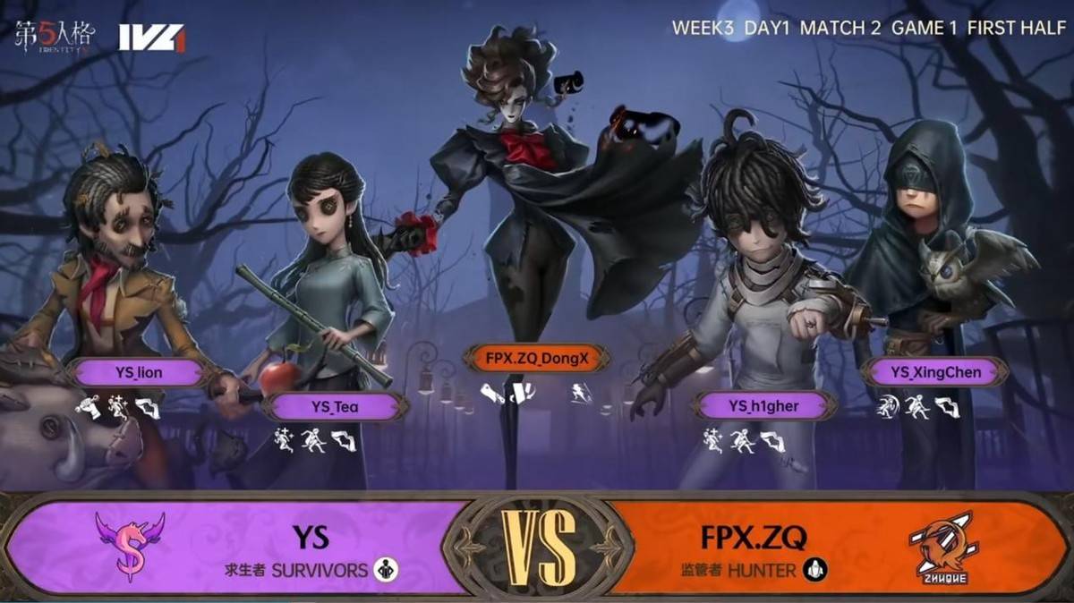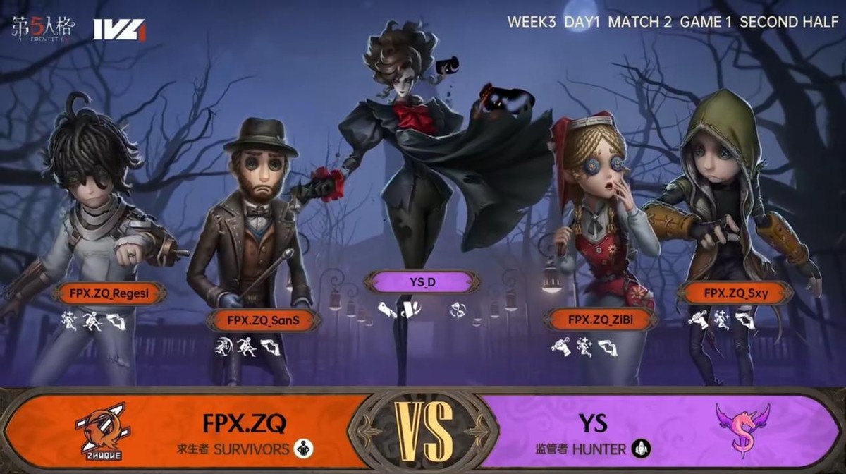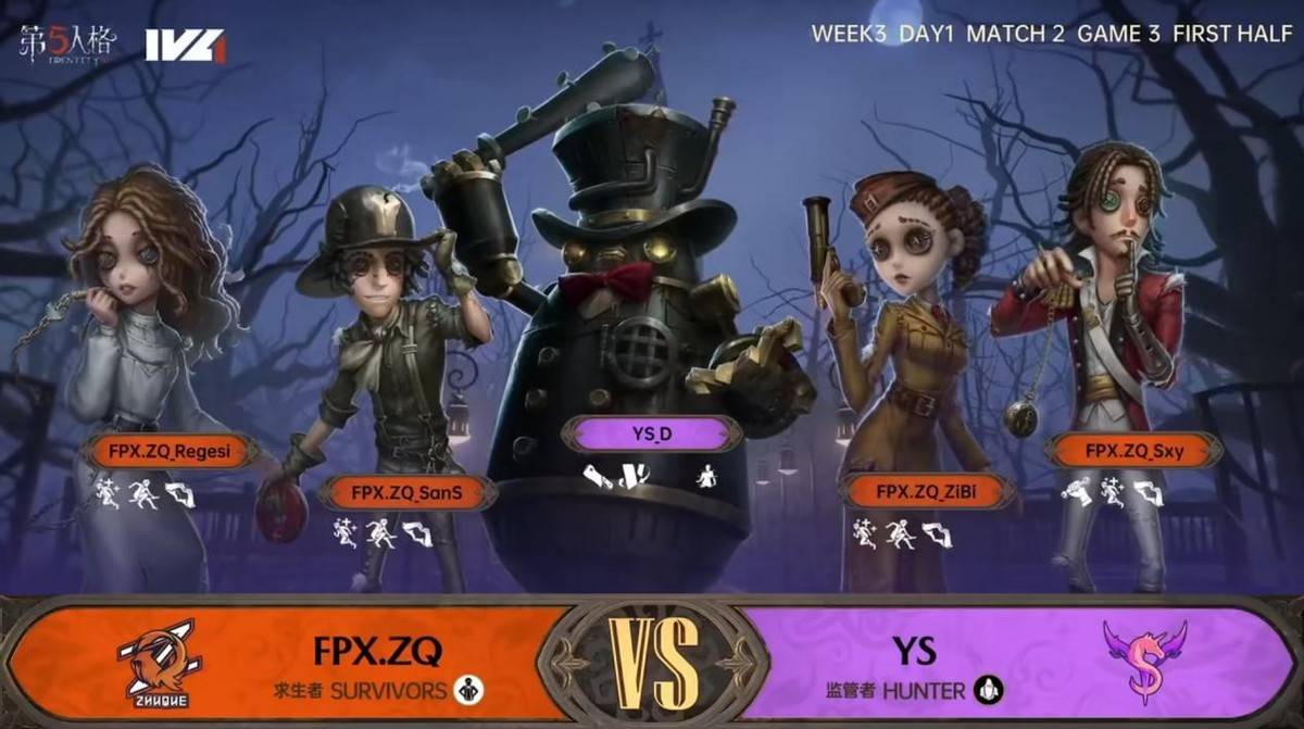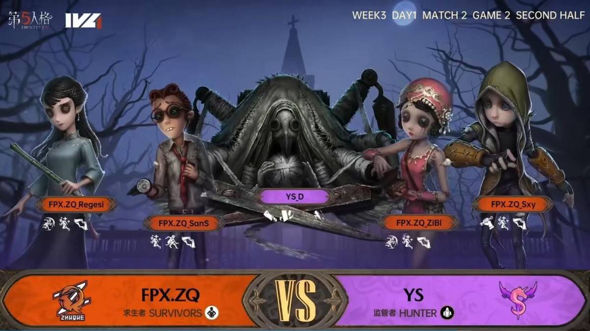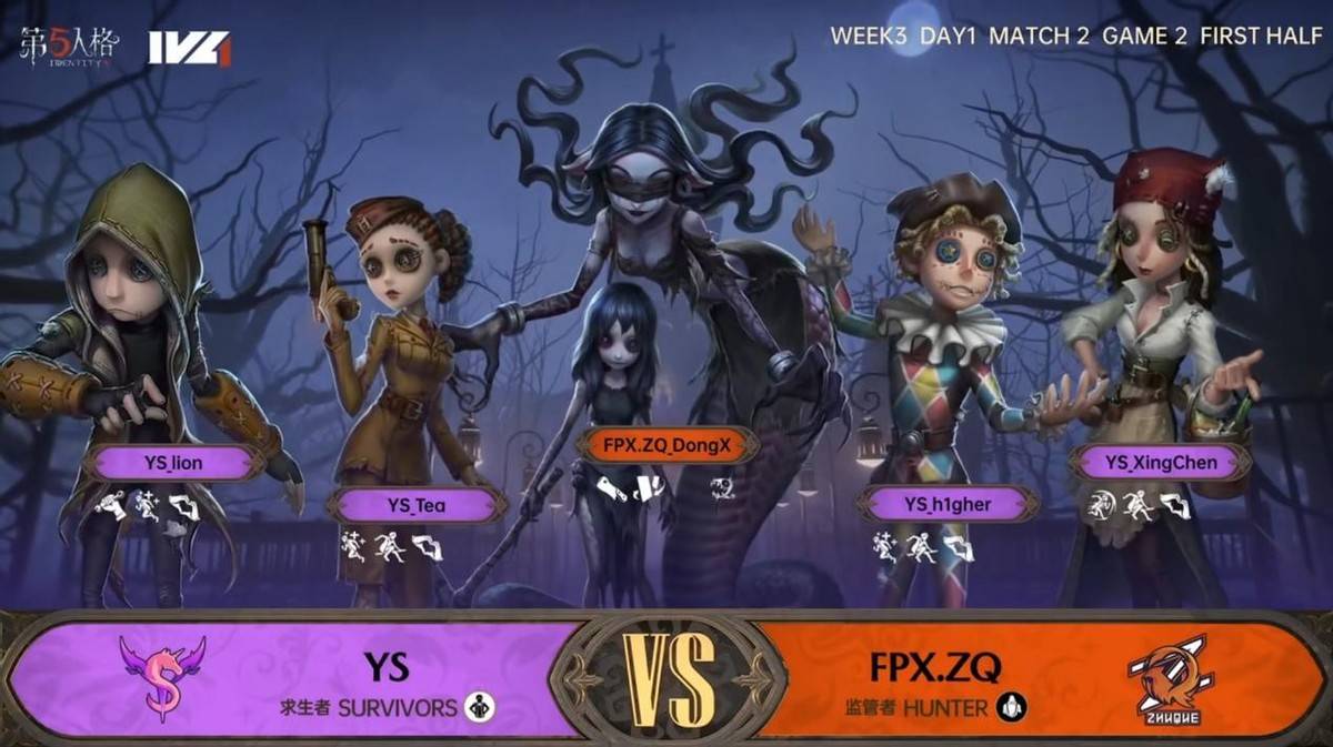 今天将进行的是第五人格2023IVL秋季赛常规赛的第3周第1天第2场比赛,对阵双方为FPX.ZQ战队和YS战队。