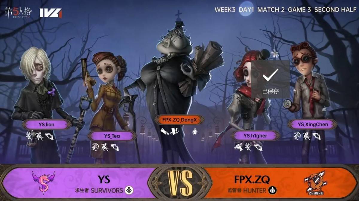 第五人格2023IVL秋季赛常规赛W3D1 第二场 YS vs FPX.ZQ
