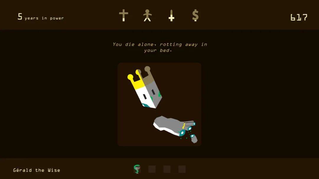 如果让你当王,你会怎么管理自己的国家?策略游戏 Reigns 王权就是一款以阅读奏折、王权交替为主题的游戏。一定程度上讲,Reigns 也有一定的 Roguelike 元素,你的每次统治只有一世,死了就要交替给下一位新王。在王座上,你会面对来自各式各样的随机事件,需要认真考虑处置方式,每一次选择都会影响宗教、民生、军事、财政四个方面的数值变化,任何一个领域归零,你的治理就到此为止。