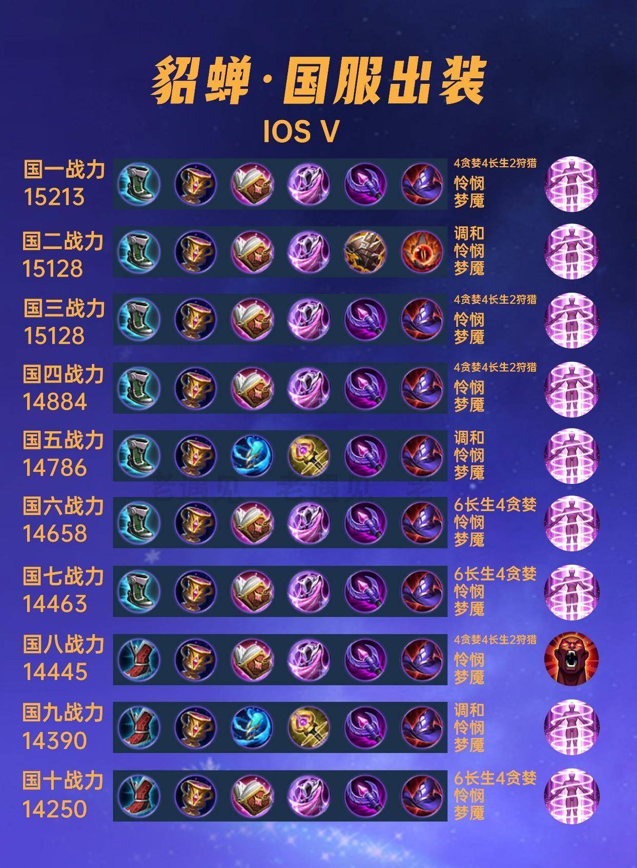 貂蝉的出装虽然不说是五花八门,但是细节的调整比较多,目前还是比较推荐这一套经典的出装。