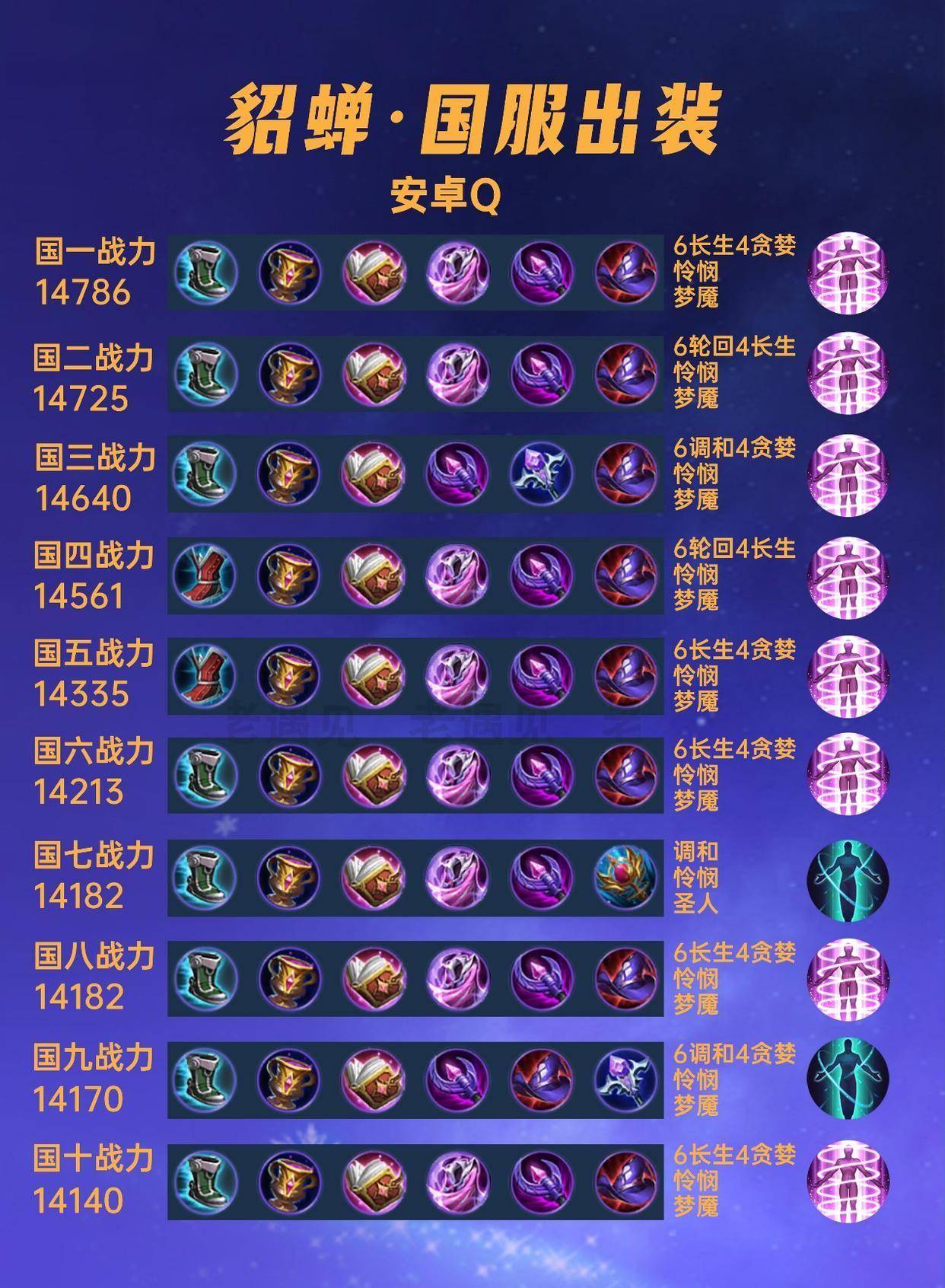 这一篇文章让我们来看一下40位国服貂蝉的出装铭文汇总。