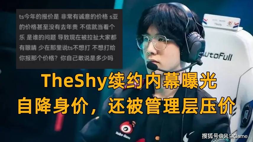 TheShy虽然说过想休息,但也很想继续打比赛,之所以迟迟没有续约,最近有网友发帖曝光了原因,从帖子的内容上来看,锅明显在WBG管理层一方,因为其中提到,TheShy为了留队,已经自降了身价(本次转会官方严查工资帽),价格相比S13赛季,还要更便宜一些。