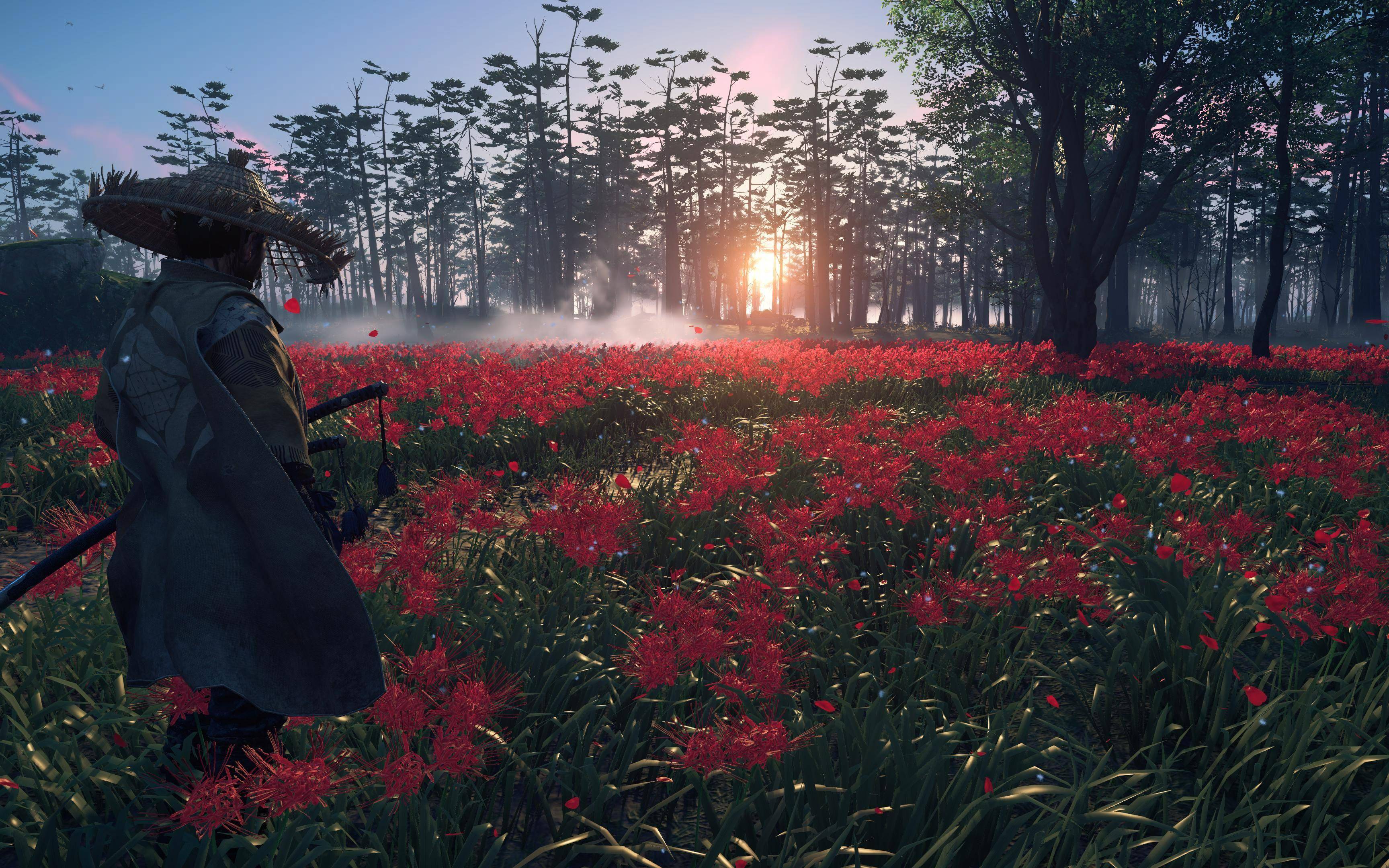 在对马岛的旅途中,境井仁通过帮助民众,结识各种各样的同伴。这些同伴都在某一领域中身怀绝技,让人不禁回想起经典名作《七武士》。实际上,本作正如开发者说明的那样,是在向导演黑泽明拍摄的剑戟片致敬。演出场景的运镜、阴影效果、剧情展开等,到处充满了致敬的要素。