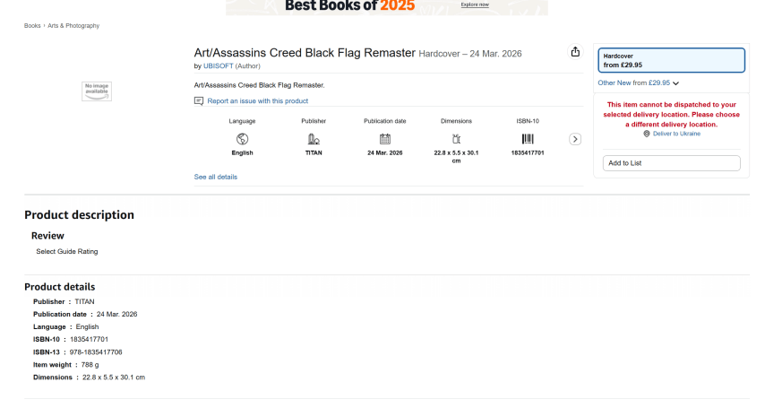 不过,近日,英国亚马逊网页上出现了官方艺术设定集《刺客信条:黑旗》重制版的预售页面,近乎实锤了该作会在今年发布。