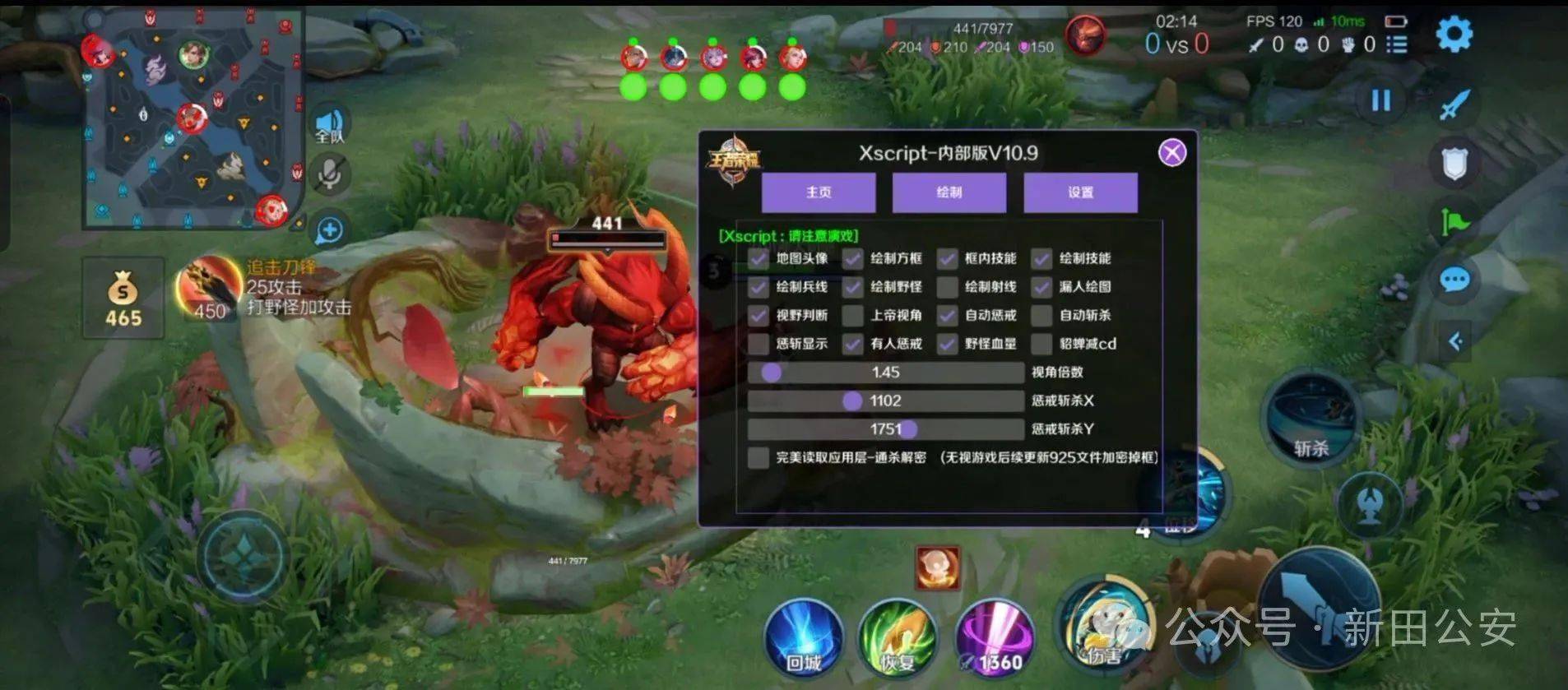 IT之家获悉,今年 6 月新田县公安局接获腾讯公司报案,称有不法分子开发并销售了一款名为“X”的手游外挂。该外挂功能强大,能透视敌方位置、监控大招冷却时间及野怪刷新时间等,严重侵害了游戏的公平性,损害了广大玩家的游戏体验,并对腾讯公司造成了巨大的经济损失。