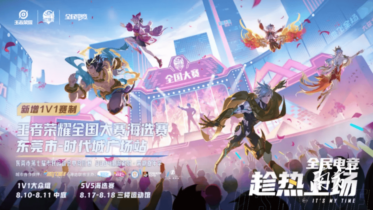 在“全民健身日”启动当天后,东莞市第七届市民运动会正在如火如荼的举行。8月10日,运动会电子竞技项目——王者荣耀东莞城市赛在东莞南城时代广场拉开帷幕。1v1大众赛已经圆满结束,紧张刺激的5V5赛即将于8月17日至8月18日在东莞时代城三楼运动馆开启。本次比赛是王者荣耀官方2024年在莞正式授权的首场海选赛赛事,同时作为东莞市民运动会电竞比赛暨潮流南城暑期嘉年华。目前,5v5比赛的报名已经结束,欢迎市民们前来观赛。