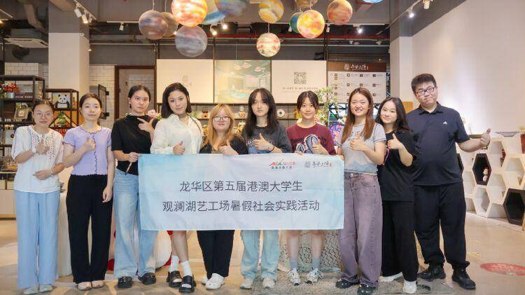 特别值得一提的是,11位来自港澳的大学生近期于观澜湖手艺工场实习。期间,大学生在非遗传承人王宁的指导下创作了以港澳为主题的蜡染艺术作品,并在文化周期间向大众展出。同学们还与各导师紧密合作,策划组织了锯琴沙龙、钢琴音乐沙龙和玻璃手造节,并全程参与策划了本次非遗文化周活动。实习期间,港澳大学生一方面担任非遗助教,同时也策划视频拍摄,利用自媒体平台为手艺工场引流宣传,充分发挥了自己“两文三语”的优势。