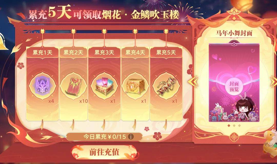 然后第二个当然就是不免费的15元连充活动了,其中比较核心的奖励就是连充2天至少30元的10张武魂觉醒券,还有连充5天至少75元的烟花,当然这个烟花应该算是概率性质的礼包,不过目前由于还没有到可以放烟花的时间,所以这个东西后续咱们还是得再观测一下。