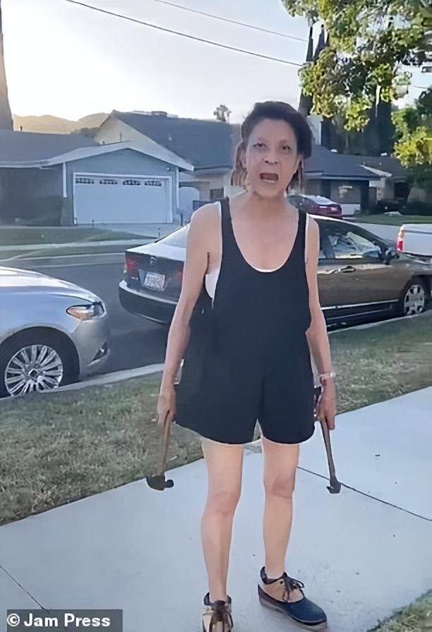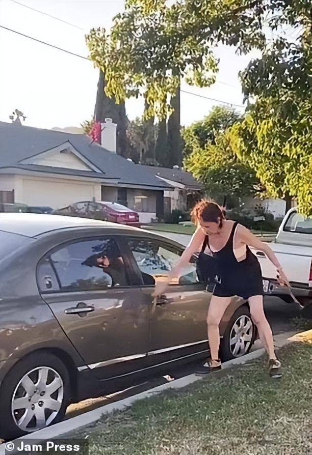 这是2020年的新闻,迈阿密一名白人女性手持两个榔头捶打邻居的汽车,