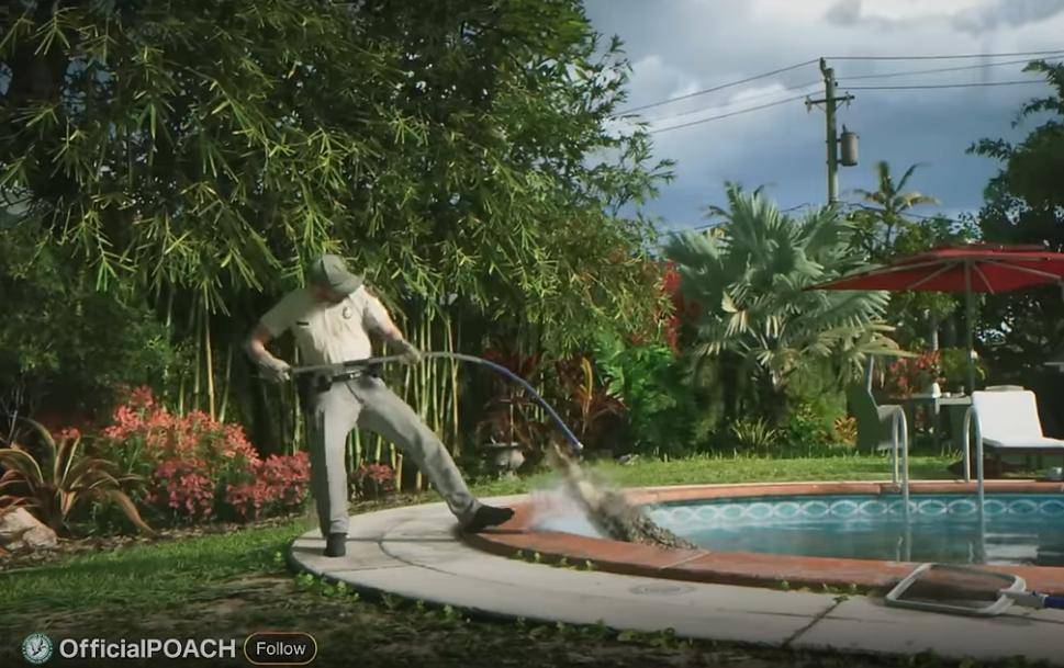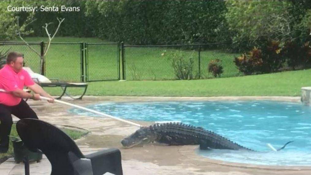 在佛罗里达,泳池抓鳄鱼也不是新鲜事了,