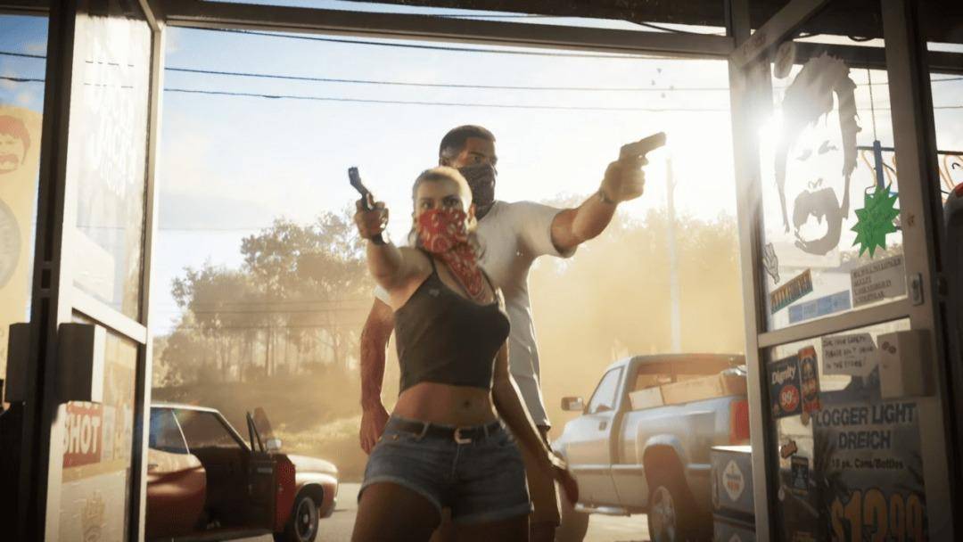 (《GTA 6》预告片,游戏角色在抢劫商店)