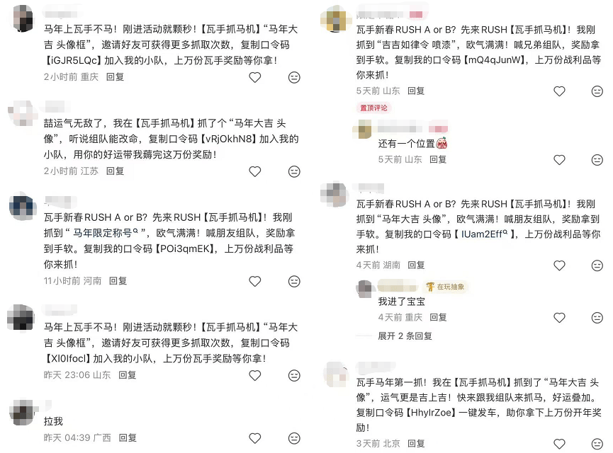 2026年春节期间,这句看似无厘头的口号像病毒一样在年轻群体中蔓延。游戏社群、朋友圈、短视频评论区,到处可见这串文字的组合。它既是祝福,也是接头暗号,更是《无畏契约:源能行动》(以下简称"瓦手")在这个春节档最醒目的文化标签。