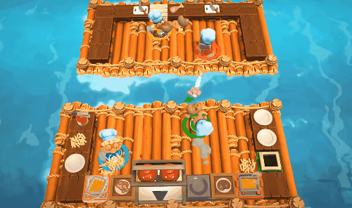 玩家需要扮演厨师,在充满干扰的厨房环境中根据订单准备食材、烹饪并送出菜肴。关卡设计包含了漂移的冰川、行驶的卡车以及失控的传送带等极端场景,食材的流转往往需要通过投掷来完成。