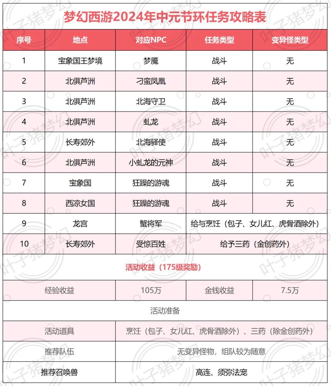 今年的中元节活动较为简单,只有环任务、挂机任务和两个特色玩法。其中,环任务非常值得大家尝试,该玩法不仅可以通过黄纸增加挂机回合,还必得物品奖励,属于是性价比极高的环任务。