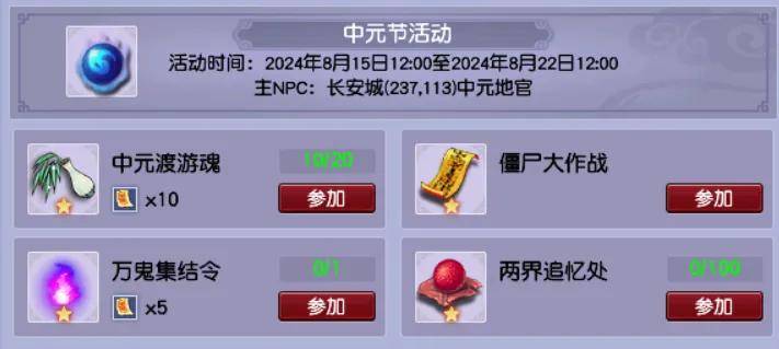 本次中元节特色玩法依然是僵尸大作战和万鬼集结令。